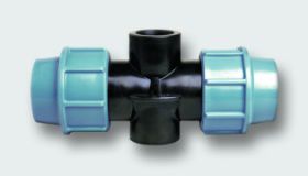 - Unidelta odbočka kříž 32 mm s vnitřním závitem 3/4" pro PE trubky až do PN16