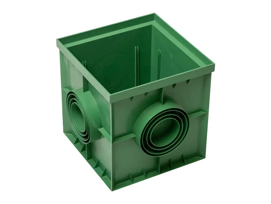 Revizní šachta čtvercová DN 400x400 mm je připravena na napojení odvodňovacího potrubí různých průměrů. Lze do ní zasunout sifónovou přepážku, čímž zamezíme úniku zápachu z potrubí. Revizní šachtu čtvercovou lze zakrýt roštem (mříží) nebo poklopem. Šachta je odolná proti mrazu, povětrnostním vlivům i čistícím prostředkům. Má zelenou barvu.