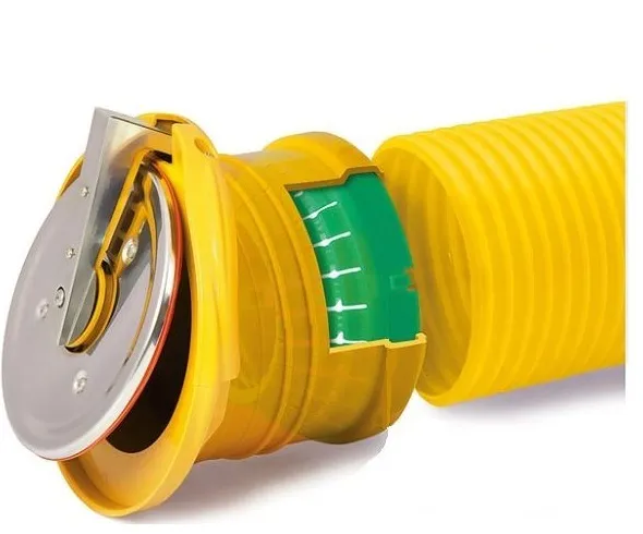 Koncová klapka má univerzální systém, který slouží k připojení drenážních trubek o variabilním průměru od 72 mm do 100 mm.