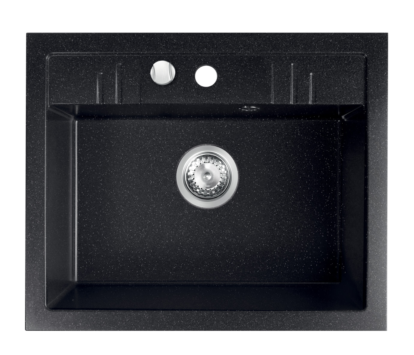 Granitový dřez s přepadem. Dřez má rozměry 58x48 cm a hloubku 17,6 cm. Automatické otevírání a zavírání výpusti knoflíkem. Součástí balení je sifon.