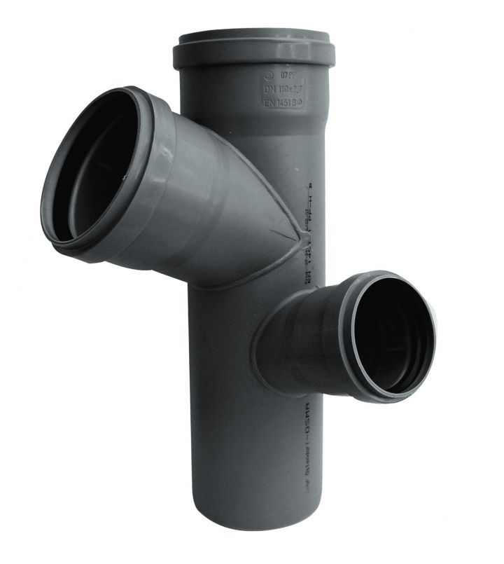 - HT rohová odbočka dvojitá dlouhá pravá 67° DN 110/110/75