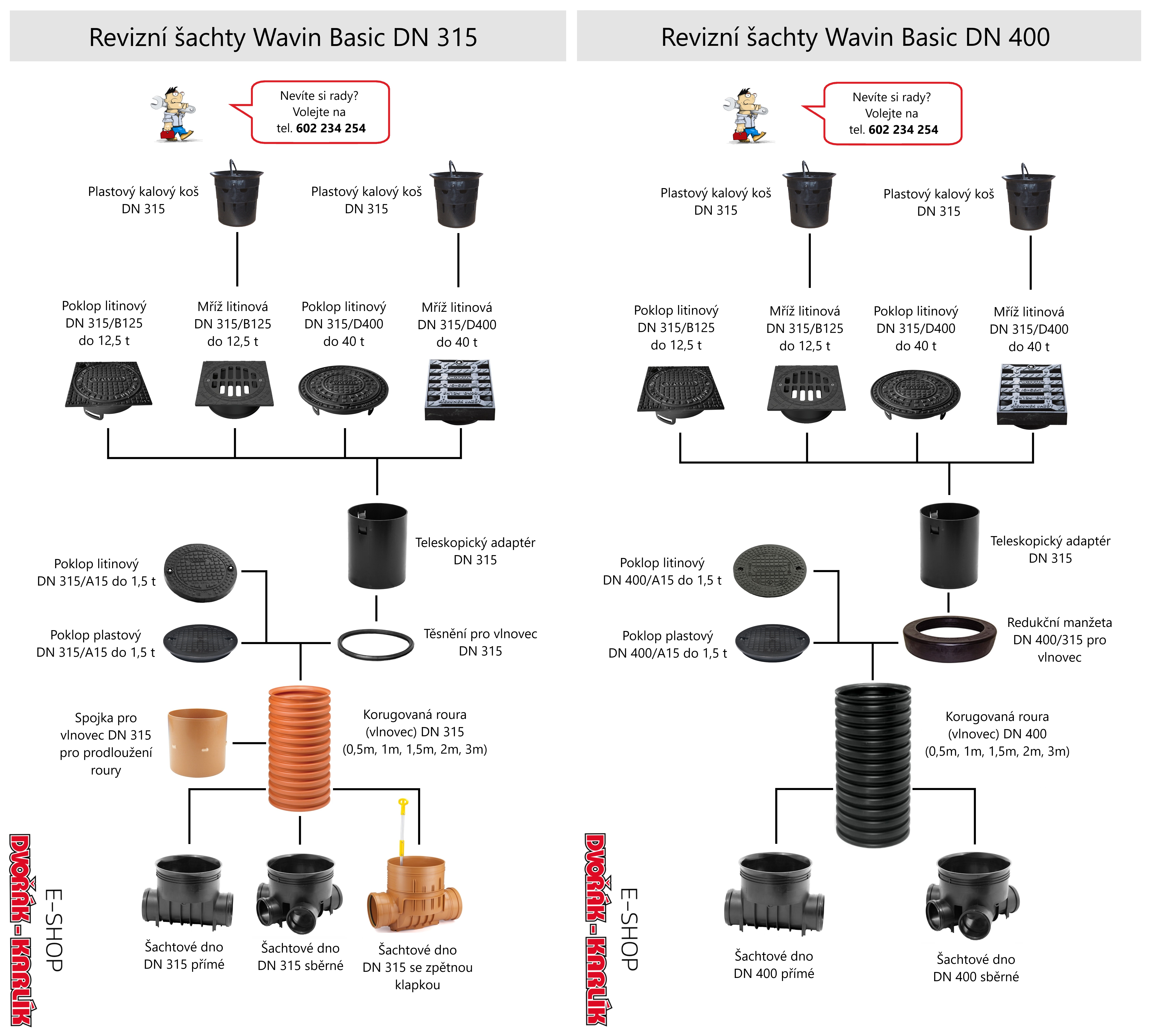 Šachty DN 315 a DN 400 od výrobce Wavin z produktové řady Basic 315 a Basic 400 kombinují vysokou kvalitu a zároveň přívětivou cenu. Zároveň umožňují široké spektrum individualizace sestavení samotné šachty tak, aby vyhověla vašim požadavkům.