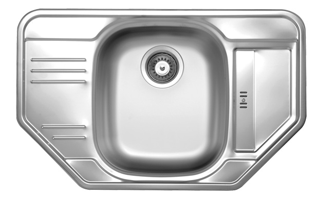 Vnější rozměr 49x78 cm a hloubka 16,5 cm. Kuchyňský rohový dřez s přepadem a s odkapovou plochou. Součástí balení je sifon NSP 89.