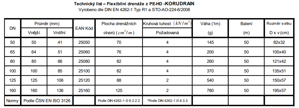 Veškeré námi nabízené drenážní trubky Böhm - Extruplast plní normu 4262-1 typ R1.