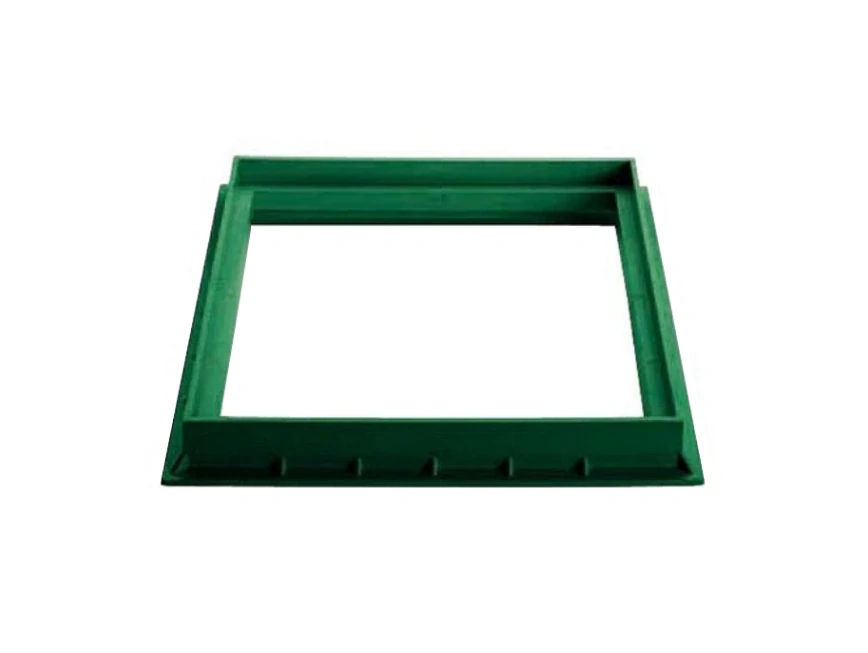 Rám pro mříž anebo poklop DN 400x400 mm. Rám je nutné v zemi pevně usadit - např. obetonováním. Rám má zelenou barvu.