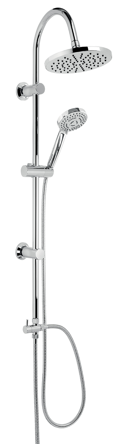 Set je vhodný pro připojení k vodovodní baterii se spodním vývodem. Součástí balení je hadice 150 cm, hlavová sprcha s průměrem 200 mm a 3-polohová ruční sprcha. Výška setu je 1060 mm. Součástí balení je připojovací hadička v délce 70 cm.